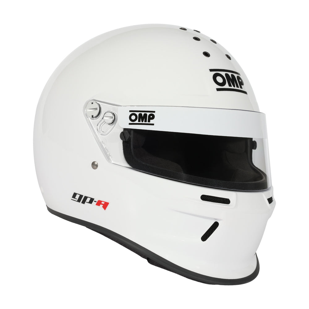 The ultra-aggressive, aero styled OMP GP-A is a multi-use, full featured, Snell SA2025 homologated racing helmet designed for the most challenging forms of dirt and pavement racing. The OMP GP-A features an integrated front-chin bar gurney for enhanced aerodynamic stability with direct flow forehead vents, upper chin bar vents and rear facing lower chin bar vents for superior ventilation and air exchange. Performance features include lightweight composite shell construction, positive visor seal, outstanding fit and superior ventilation. The GP-A is an excellent choice for racers who need quality, performance, and value.